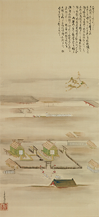 鉄斎は中国の故事や逸話を描いた作品がよく知られていますが、日本を題材とした作品も多く、画題によってはやまと絵風に描かれています。